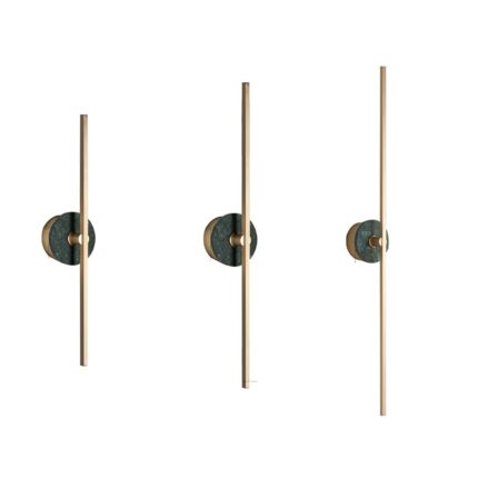 Sleek and sculptural, the Zylaro Stone Wall Light combines brushed brass with a dark green marble accent. Its minimal vertical