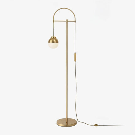 This floor lamp is inspired by the minimalist elegance of mid-century modern design. The slender metal tripod base not only