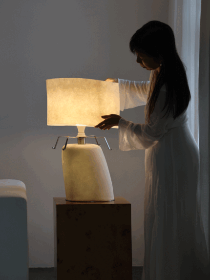 The Vellum Table Lamp by Vakkerlight is a quiet triumph of material and form — a luminous sculpture wrapped in