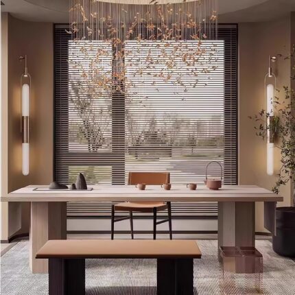 The Gong Pendant Lamp is a statement piece that combines sleek design with traditional craftsmanship. Its large size and subtle