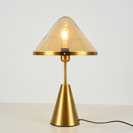 Its elegant lampshade is set on a steel base that is available with or without a walnut cover, and an
