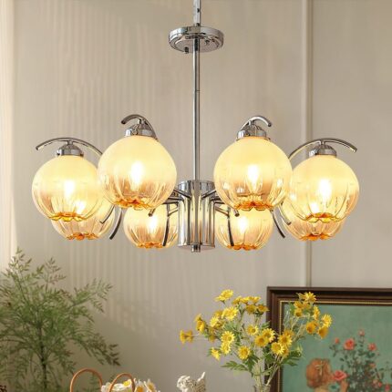 The “Luminous Petal Glass Chandelier” is a delicately modern lighting piece that elegantly fuses glass and metal. Inspired by the