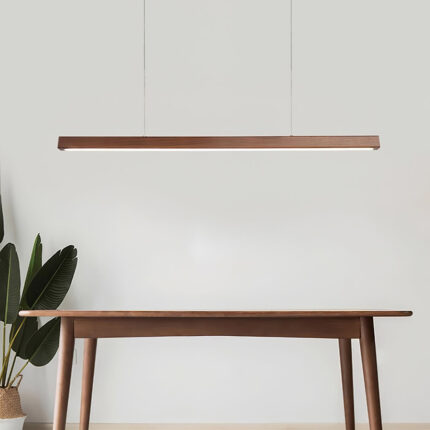 The Linear Horizon Pendant Light is a modern embodiment of simplicity and elegance. With its sleek, elongated wooden bar design,