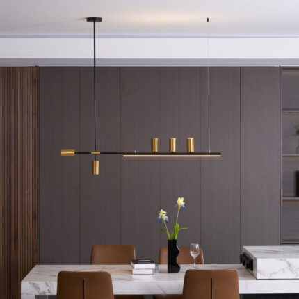 The Linear Elegance Pendant Lamp showcases a refined, minimalist design perfect for contemporary spaces. Its slender horizontal bar, crafted from