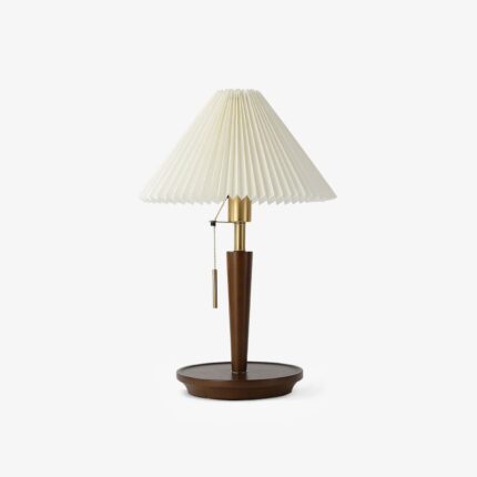 A Cone Pleated Fabric Table Lamp for vakkerlight. base made of solid wood and featuring a new white textured linen