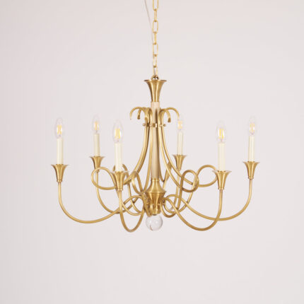 This Curved Arm Bell Chandelier with white lily-of-the-valley adds a touch of sophistication to any ceiling. The elegant white finish