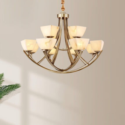 Exquisitely crafted with precision, using premium copper and embellished with opulent Alabaster accents, this chandelier seamlessly merges modern aesthetics with