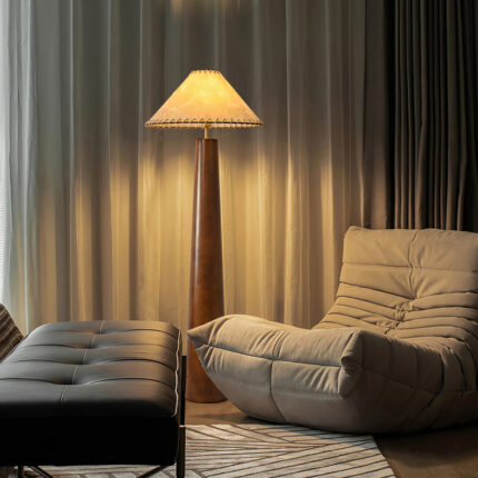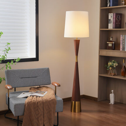 Crafted from high-quality iron with a faux wood grain finish, this lamp introduces a touch of organic texture while maintaining