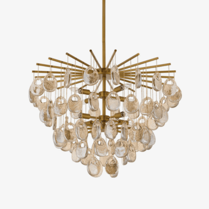 The Marigold Chandelier combines rustic charm with luxury, featuring tiers of golden glass petals that create a radiant, cascading effect.