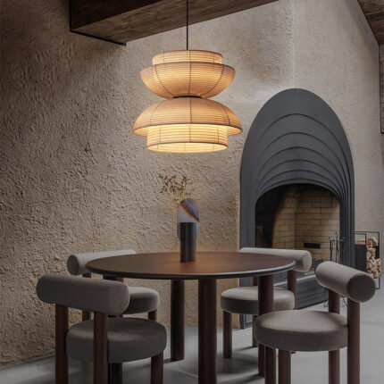 With a Wabi-sabi style design and tranquil elegance, the Wood and Fabric Series Pendant Lamp infuses your dining area with