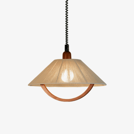 The Odessa Light Pendant by Vakkerlight showcases a striking fusion of soft fabric and elegant wood, creating a statement piece
