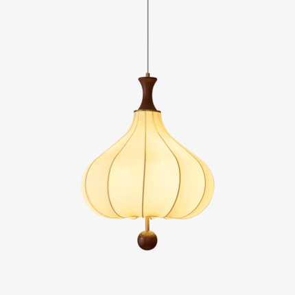 The Solene Balloon Ceiling Light by Vakkerlight is an elegant fusion of fabric and wood, creating a light fixture that