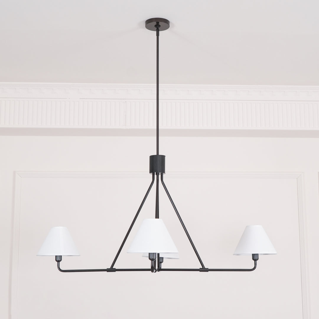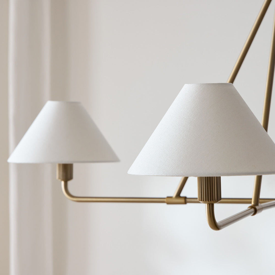 Experience the modern elegance of the Axis Chandelier. Its sleek, angular design, inspired by minimalist architecture, brings a bold energy to any room. Crafted with simple metal silhouettes and smooth lines, this chandelier exudes a sense of soft sophistication. Elevate your space with this stylish statement piece.