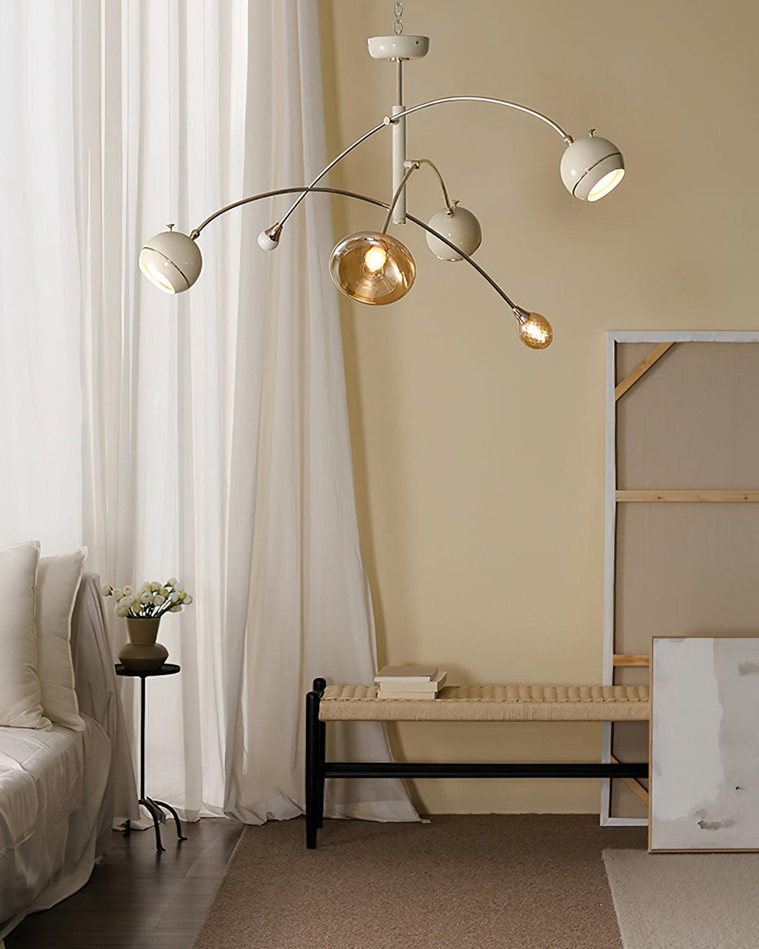 Beanie Chandelier blends mid-century charm and futuristic design to enhance your home decor. Equipped with 4 or 5 LED light heads, this chandelier is an eye-catching piece that not only illuminates a room but also enhances its beauty. The irregular arrangement of the armrests adds a touch of asymmetrical beauty, making it a focal point above the dining table or in the living space. It’s designed for those who appreciate bold simplicity and sci-fi elegance. This chandelier is the perfect addition to spaces that celebrate the unusual and stylish.