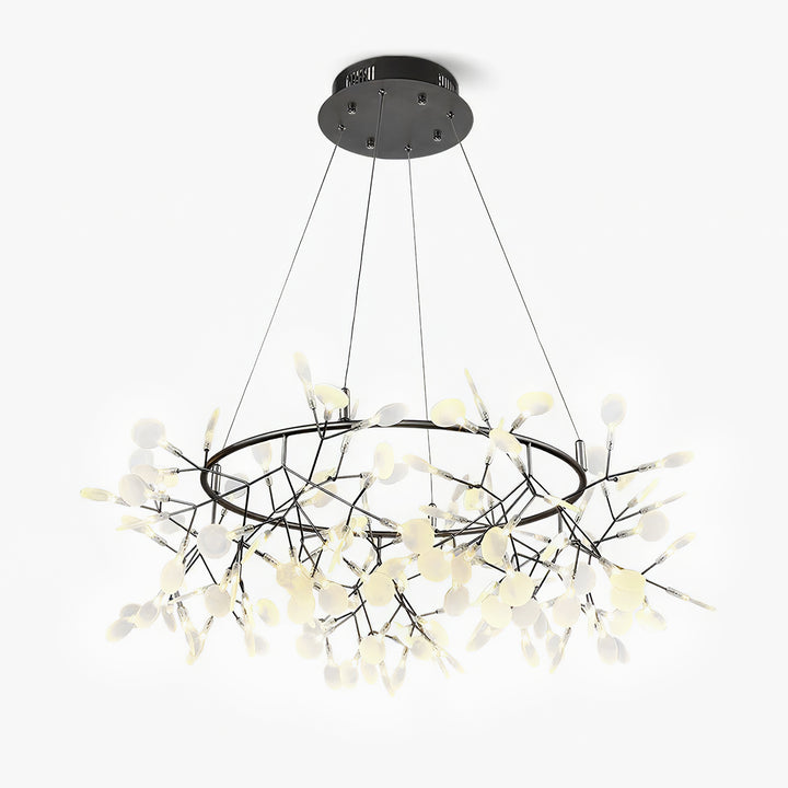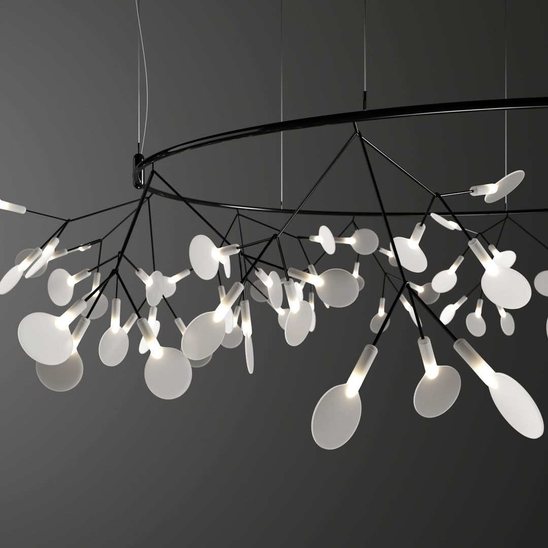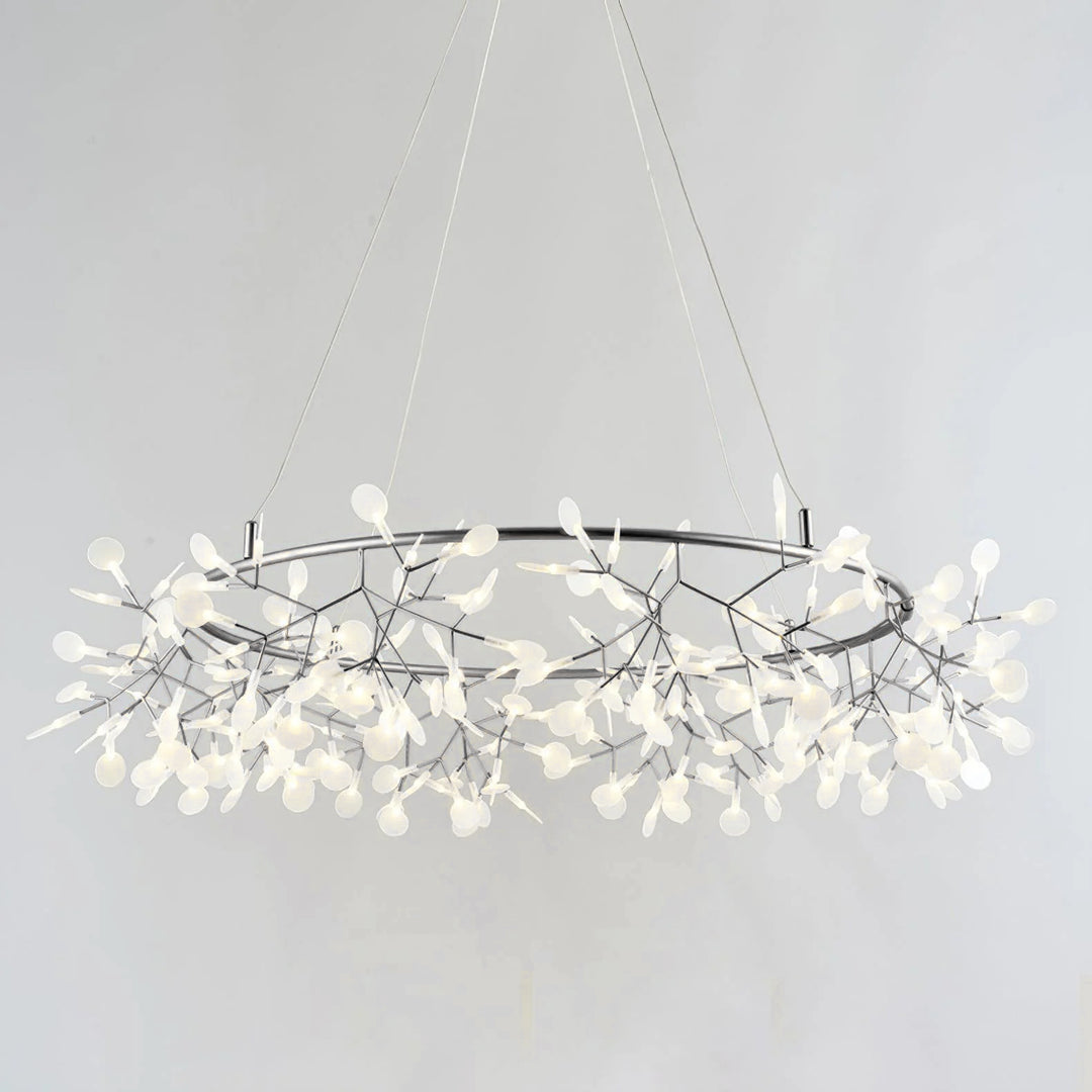 The Big O Firefly LED Chandelier will bring a touch of modern elegance and natural beauty to any home. Its complex white leaves are branched off from one trunk and are free-repositionable around the stem, all made possible with its ultra-thin layer of conductive material. Constructed with metal wireframing, polycarbonate lenses, and thin suspensions, it is an eye-catching lighting fixture.