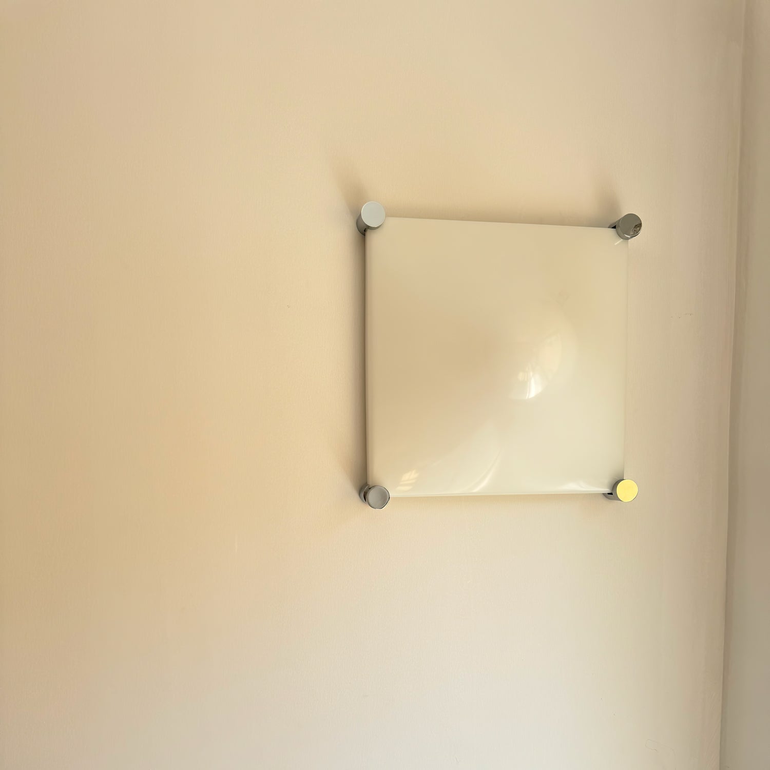 Still in the act of being filled, a bubble of light seems to come out of the ceiling. It looks like a thin material that becomes heavier with its contents and that could burst at any moment, if it weren’t supported by 4 spacers placed at the four corners of the base.
