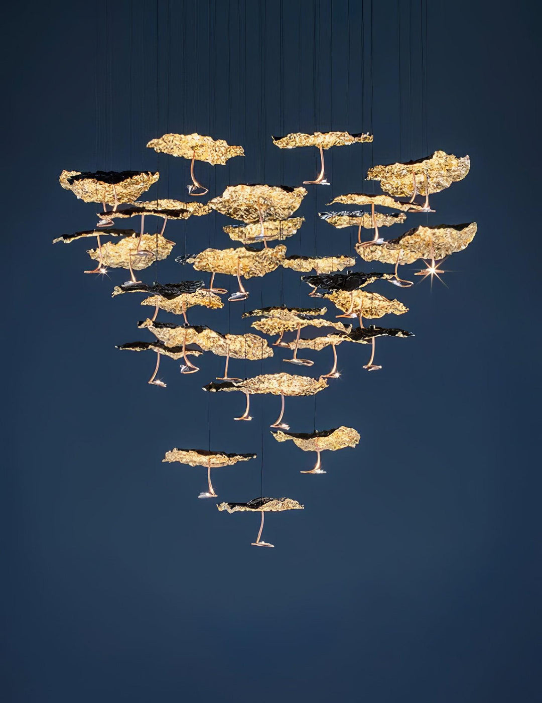 Crafted with metal shards delicately arranged in a moon-shaped design, the Brass Aviary Constellation Chandelier is a stunning addition to any home. Its dome-shaped canopy is intentionally fractured to create an eye-catching feature on your ceiling. This vibrant steel-clad artwork casts light in all directions, making it the perfect accent of celestial beauty and radiance.