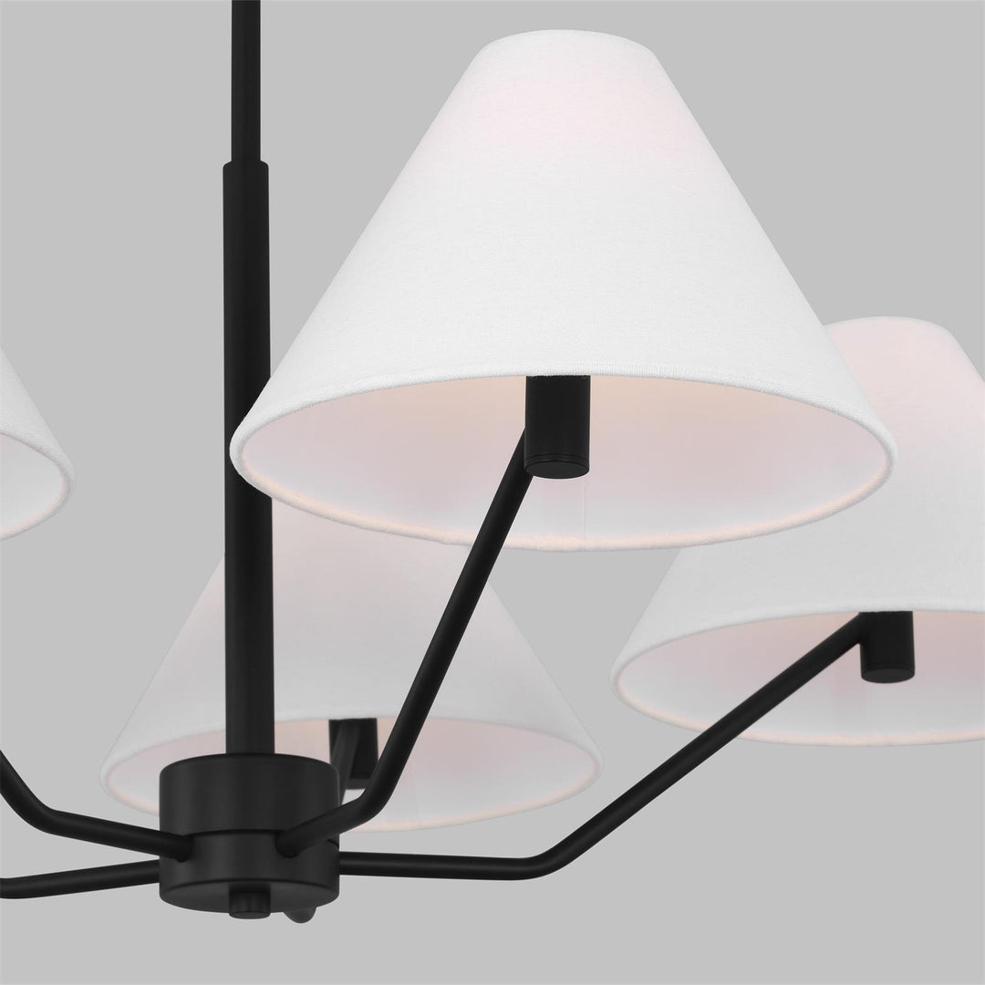 Introducing the Burke Chandelier – a modern take on classic mid-century design. Its minimalist aesthetic and adjustable arm make it suitable for any space. The cone-shaped white fabric shade creates a soft, ambient glow perfect for kitchens, dining rooms, or living rooms. Sophisticated and versatile, the Burke series is sure to elevate any room.