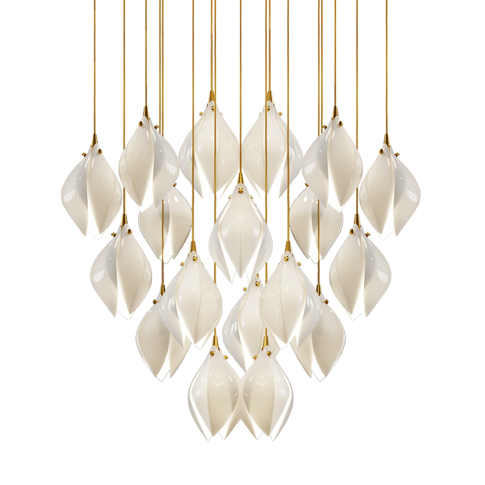 Introducing Celeste Flora Pendant Light, where elegance meets nature. The soft glow from within the stylized blooms, accented in gold, adds a touch of opulence to any space. Experience the first blooms of spring all year round with this luxurious lighting range.
