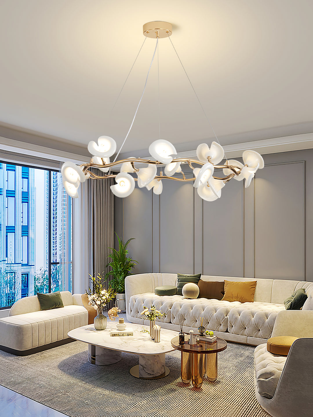 The Cerisium Blossom Chandelier combines the timeless elegance of electroplated iron with the delicate charm of ceramic petals. Designed to evoke the organic beauty of nature, this chandelier exudes a soft, radiant glow as its elegant branches twist and bend like a blooming flower. The fusion of materials creates a striking contrast between modern craftsmanship and nature’s simplicity, perfect for illuminating your home with a touch of sophistication and grace. A standout piece that brings refined style and warmth to any living space.