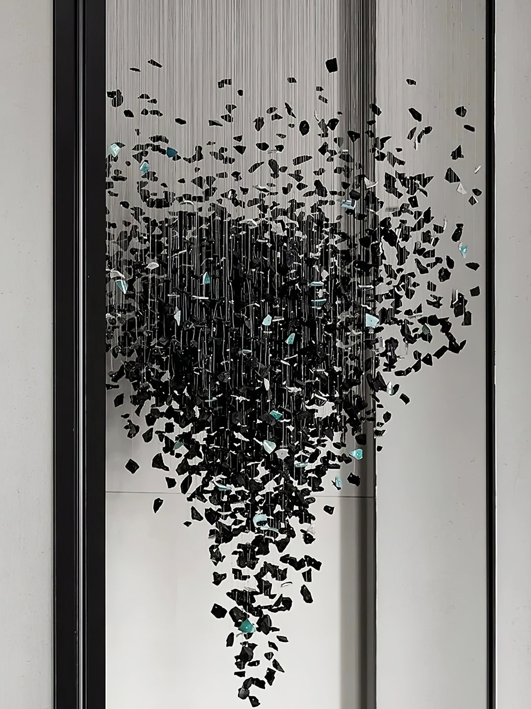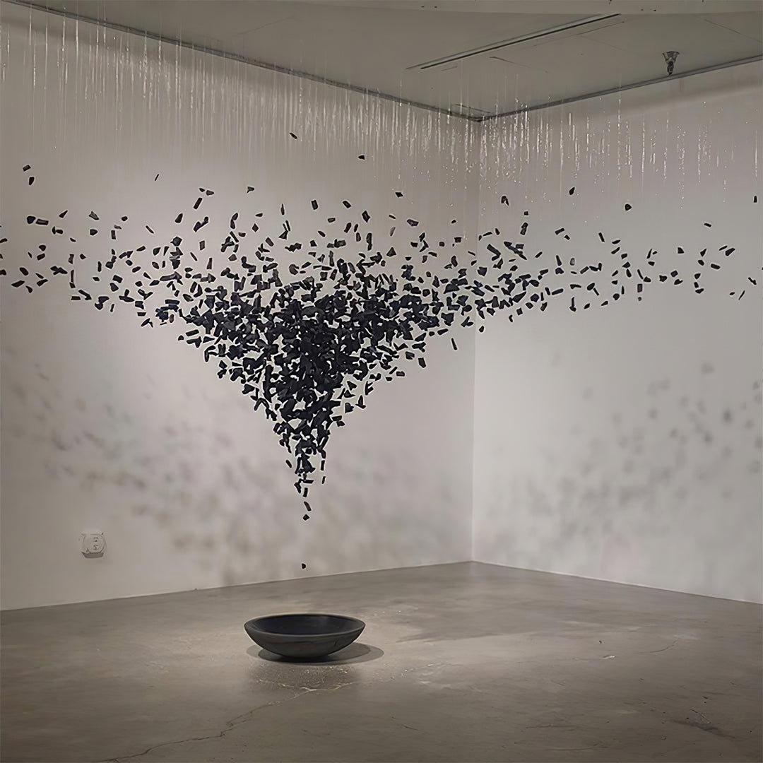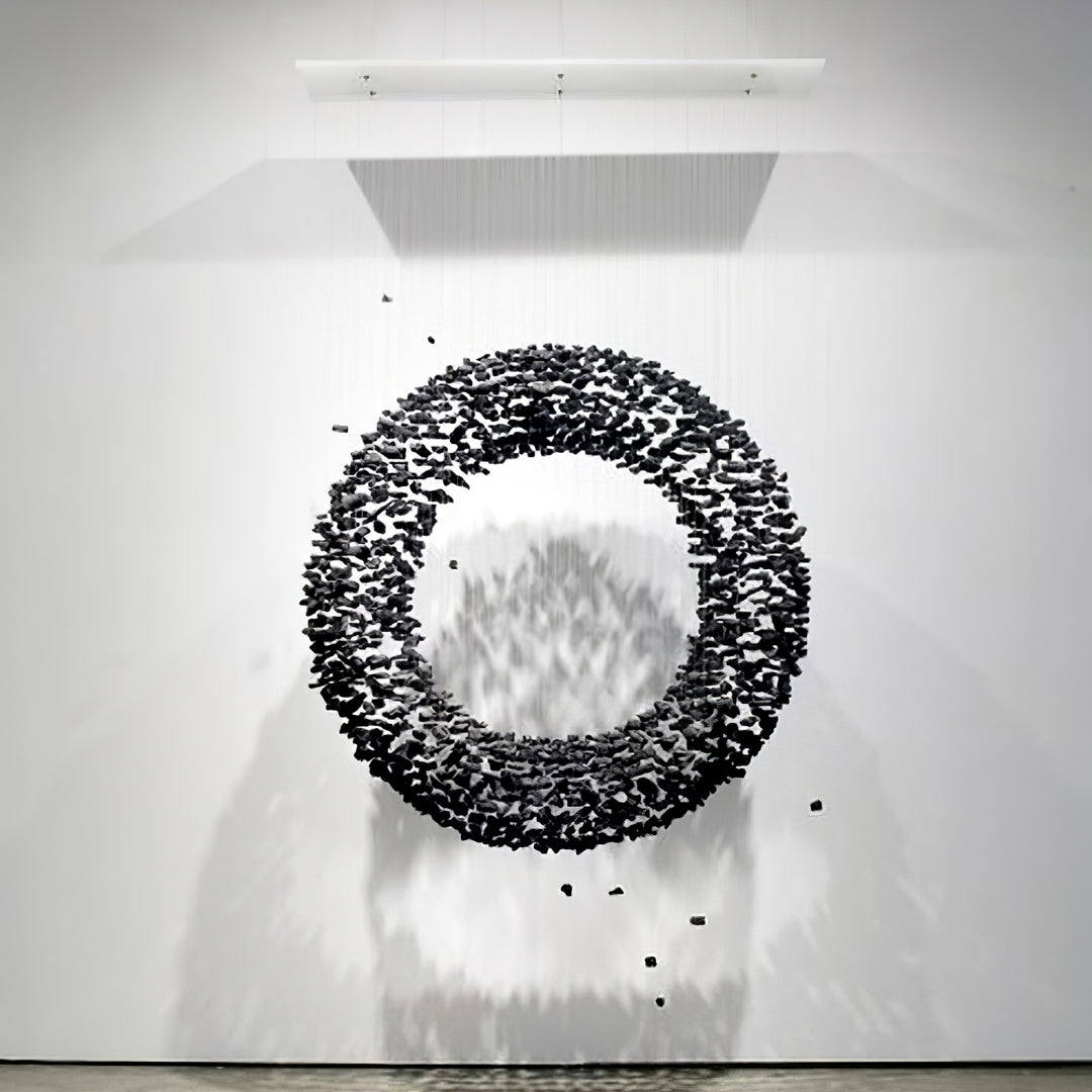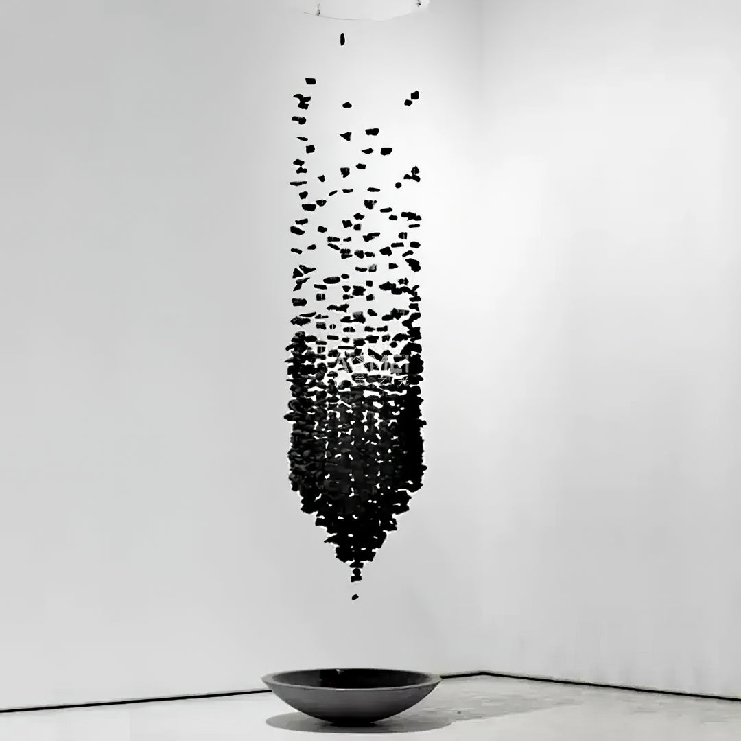 What begins with a single lump of charcoal extends into a line and then expands to fill a space. The design artist uses charcoal, with its dualistic connotations of creation and destruction, to suggest that everything in the world is connected and that the entire universe is contained within a single point. The implications are simple and clear.