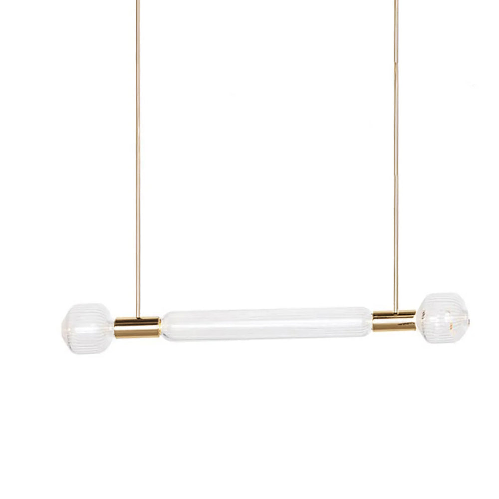 The cipher collection is a juxtaposition of heritage techniques and contemporary form. Its delicate hand-blown crystal cylindrical pieces are cut with clean, clear lines. Light emits only from connection points and the sources are ingeniously hidden to soften the overall effect.