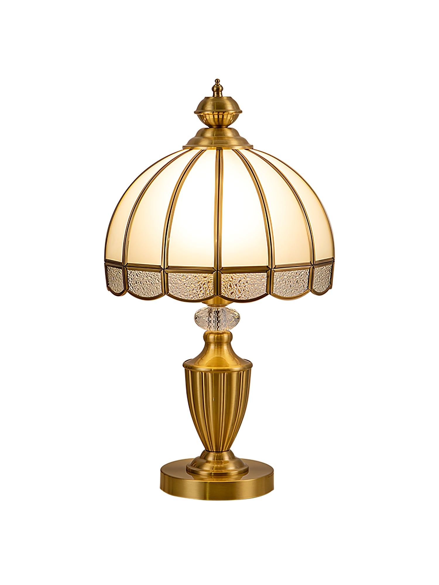The Clarissa Table Lamp by Vakkerlight captures vintage charm with its golden dome shade, intricate glass detailing, and elegant golden base. This sophisticated piece illuminates your space with a warm, ambient glow, making it a timeless addition to your decor.