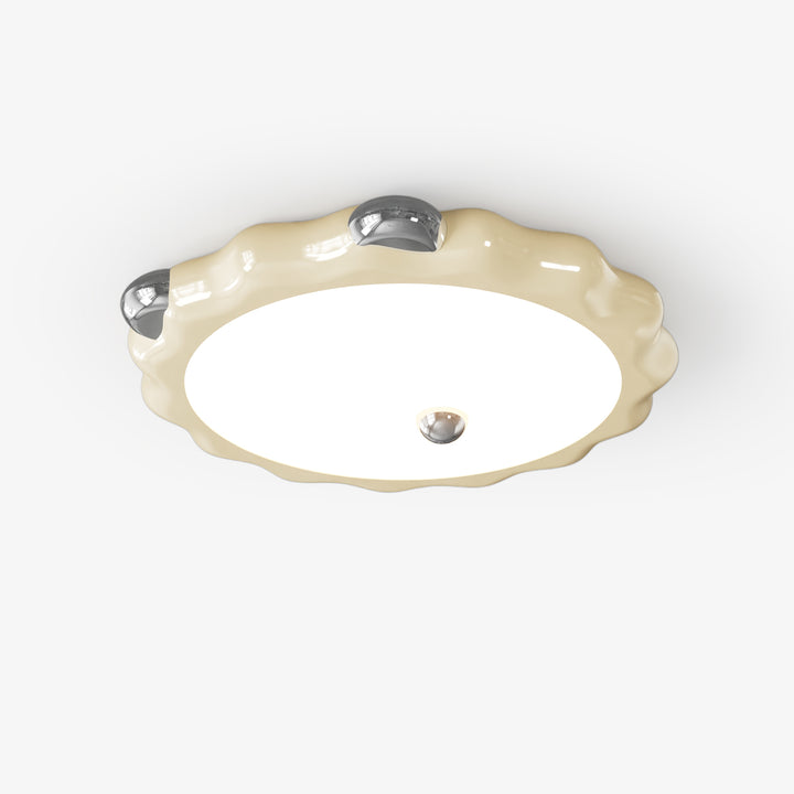 Add a touch of whimsy to your space with the Cream Puff Ceiling Light by Vakkerlight. Its adorable, cream-like scalloped design radiates a warm, soft glow, creating a cozy and cheerful atmosphere in any room. Perfect for adding charm and personality to your home.