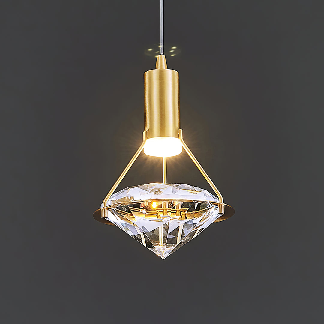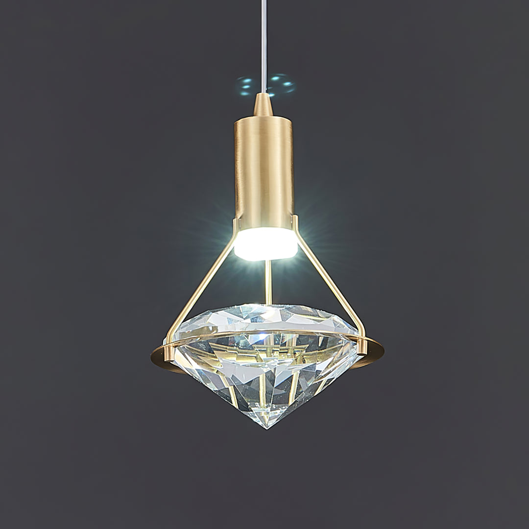 This Modern Diamond Pendant is a designer’s dream. It will create a beautiful showpiece for any interior. Brass and clear crystal marry in this edgy and unique design piece. Hang this light in a living room, over a dining table kitchen island, bedroom, or anywhere you need a moody and dramatic touch. Bringing a splash of modern style as it peeks through, this exquisite Modern Diamond Pendant will add an illuminating statement in aesthetics to your choice.