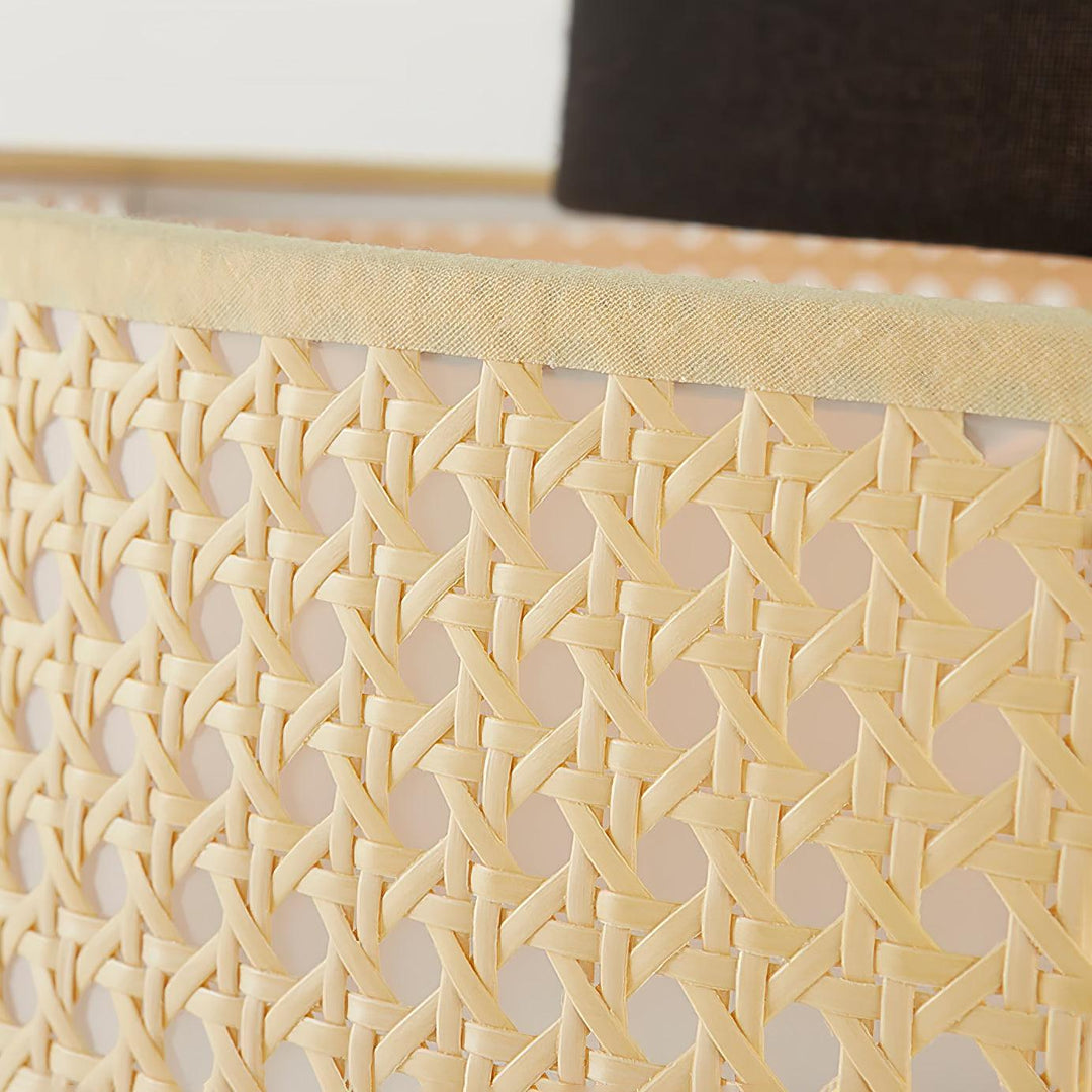 Upgrade your home with our Drum Shade Pendant Light. The retro design features a black linen interior shade surrounded by a rattan shade and a metal frame. The black fabric cord adds a finishing touch. Expertly crafted for a touch of elegance and style.