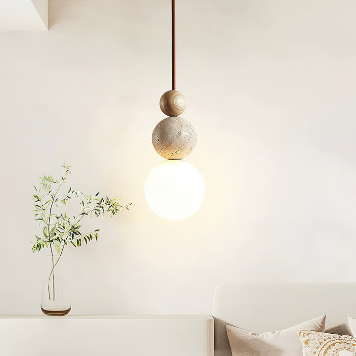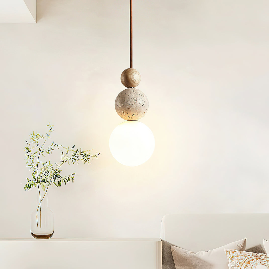 The Elara Duo Pendant Lamp beautifully combines natural yellow travertine with warm wooden accents, creating an elegant and earthy lighting piece. Its unique stacked globe design adds a sense of balance and harmony, making it ideal for creating a serene atmosphere in any space. Perfectly suited for dining areas, bedrooms, or cozy corners, this lamp seamlessly integrates artistry and functionality.