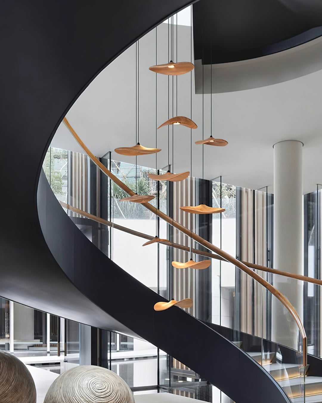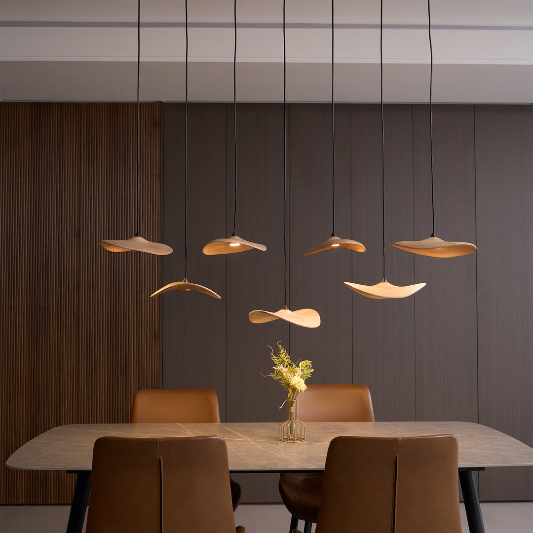 Transform your space with the Empty Leaf Chandelier. Its delicate hanging leaves, crafted with soft wood tones, bring warmth and elegance to any room. With its simple structure and individually hung leaves, this chandelier creates a dynamic and sculptural effect, making it a perfect choice for a dining room, living room, or entryway. Expertly crafted for a light and airy feel.