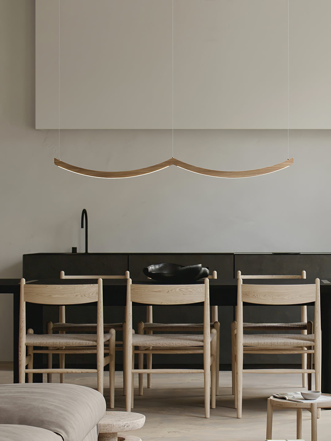 The Felix Crescent Pendant Lamp presents a strikingly minimalist aesthetic, embodying the elegance of simplicity in its gently curving design. Crafted from richly toned wood, this lamp casts a warm, inviting glow that gracefully illuminates any space. Ideal for modern living areas or over a sleek dining table, the Felix enhances the atmosphere with its understated yet captivating form, making it a perfect centerpiece for contemporary interiors.