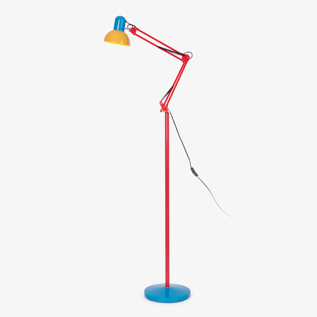 Flexi Bright Floor Lamp brings a vibrant pop of color and flexible design to your workspace. Its bright blue base, eye-catching red adjustable arm, and sunny yellow lampshade not only provide necessary illumination but also a stunning decorative piece. Its multi-jointed arm design allows you to effortlessly adjust the head to the ideal angle and height, ensuring suitable lighting on your work surface at any time. Perfect for reading, working, or having as a creative partner, the Flexi Bright Floor Lamp is an ideal choice for improved efficiency and aesthetics.