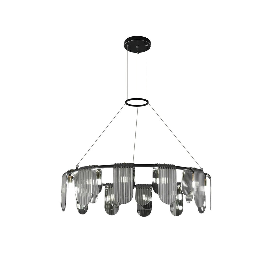 The Folioles Brass Chandelier is an elegant choice of lighting for any room. Crafted with brass fixtures and an oval-shaped ash-gray lampshade, this chandelier is sure to bring effortless sophistication to your home.