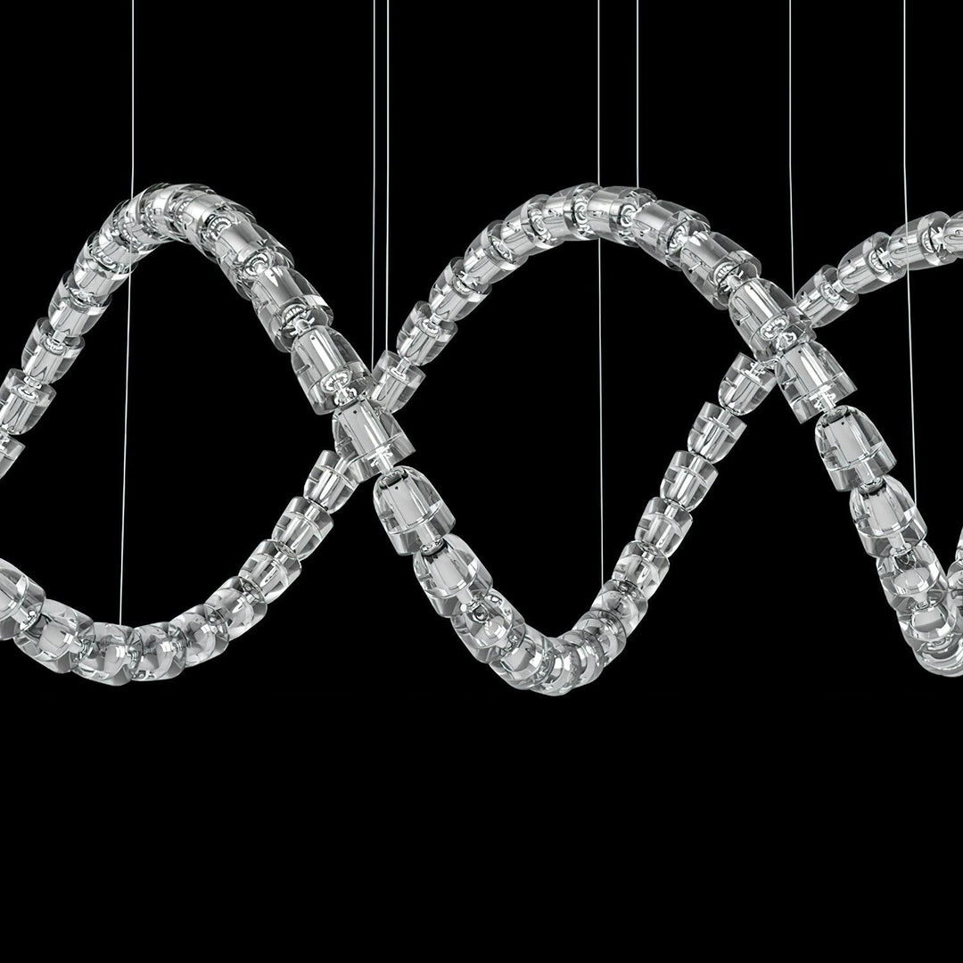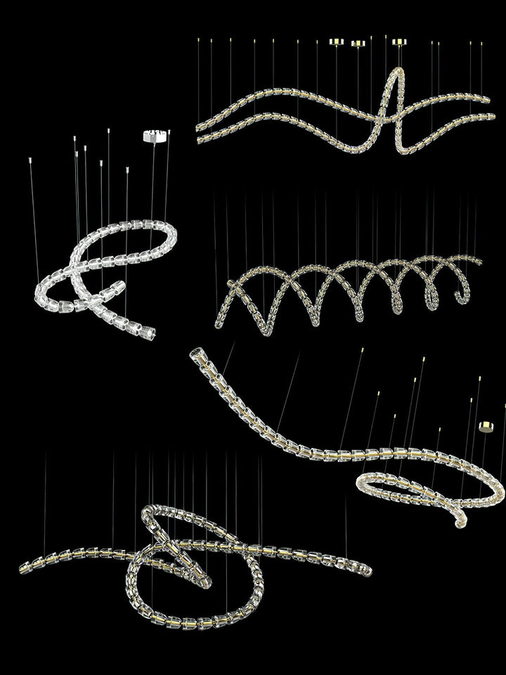 The light form, inspired by snakes, is a striking testament to fluid design in modern lighting. The light fixture gracefully snakes down from the ceiling, mimicking the graceful slither of a snake. The chandelier’s silhouette is a dynamic display of movement, with every curve and coil carefully designed to reflect the sinuous nature of these sleek creatures. LED lighting embedded in its streamlined form accentuates the chandelier’s sinuous path, casting an ambient glow that accentuates its serpentine elegance. Infused with curiosity and sophistication, the design is perfect for contemporary spaces looking for bold yet sophisticated statement pieces.