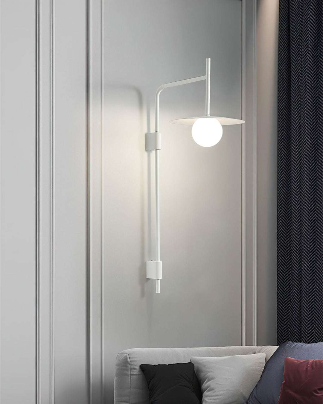 The Gea Wall Lamp features a unique blend of modern design and classic charm. The intricate detailing and delicate curves of the iron frame add an element of artistry to the overall aesthetic. Combined with the soft glow emitted from the lampshade, it creates a captivating ambiance and a warm, welcoming atmosphere.