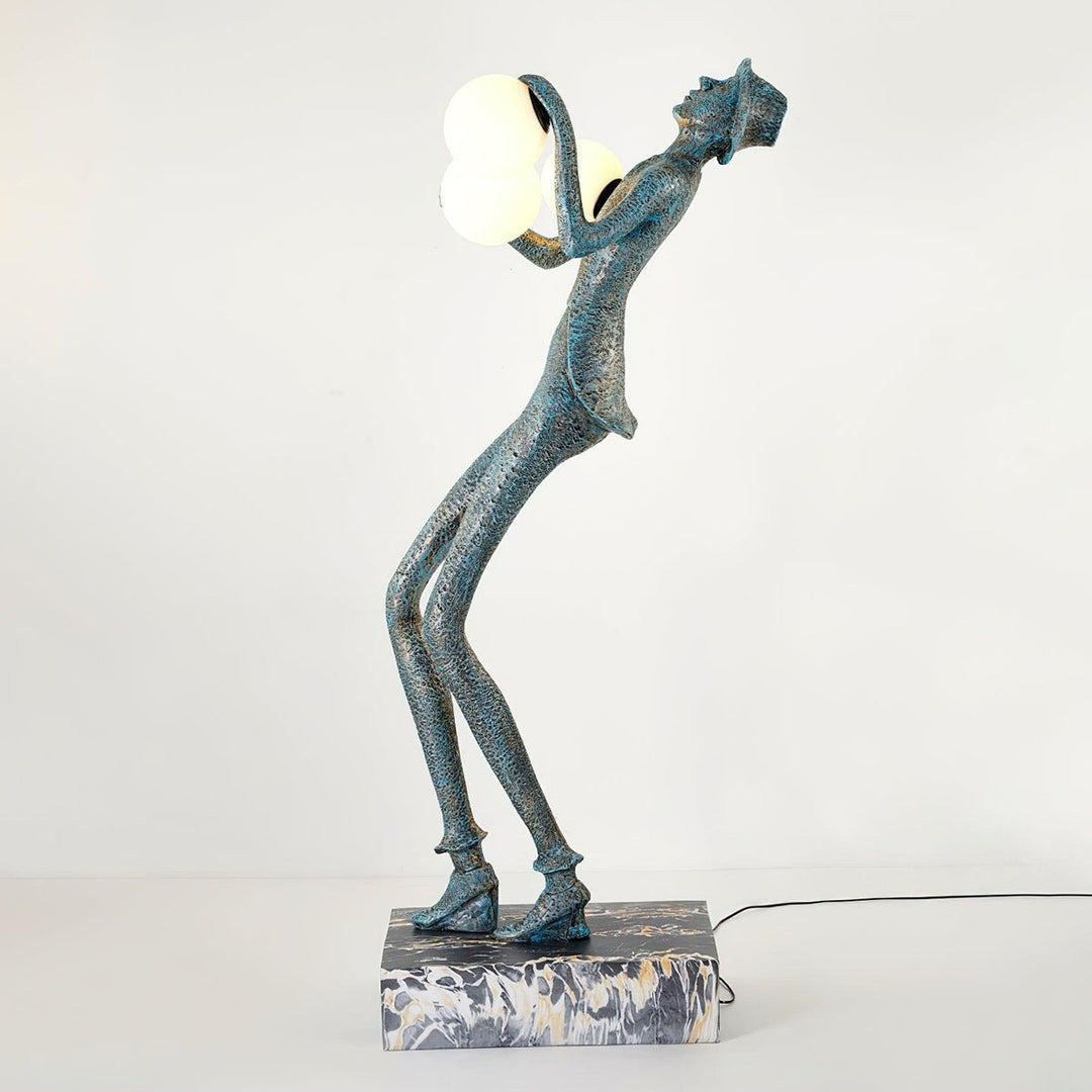 The weathered blue finish and intricate detailing add a unique character, making it an eye-catching statement piece for living rooms, offices, or artistic spaces. The Modern Gentleman Sculpture Floor Lamp blends whimsical design with practical lighting, creating an inviting and sophisticated focal point in your decor.