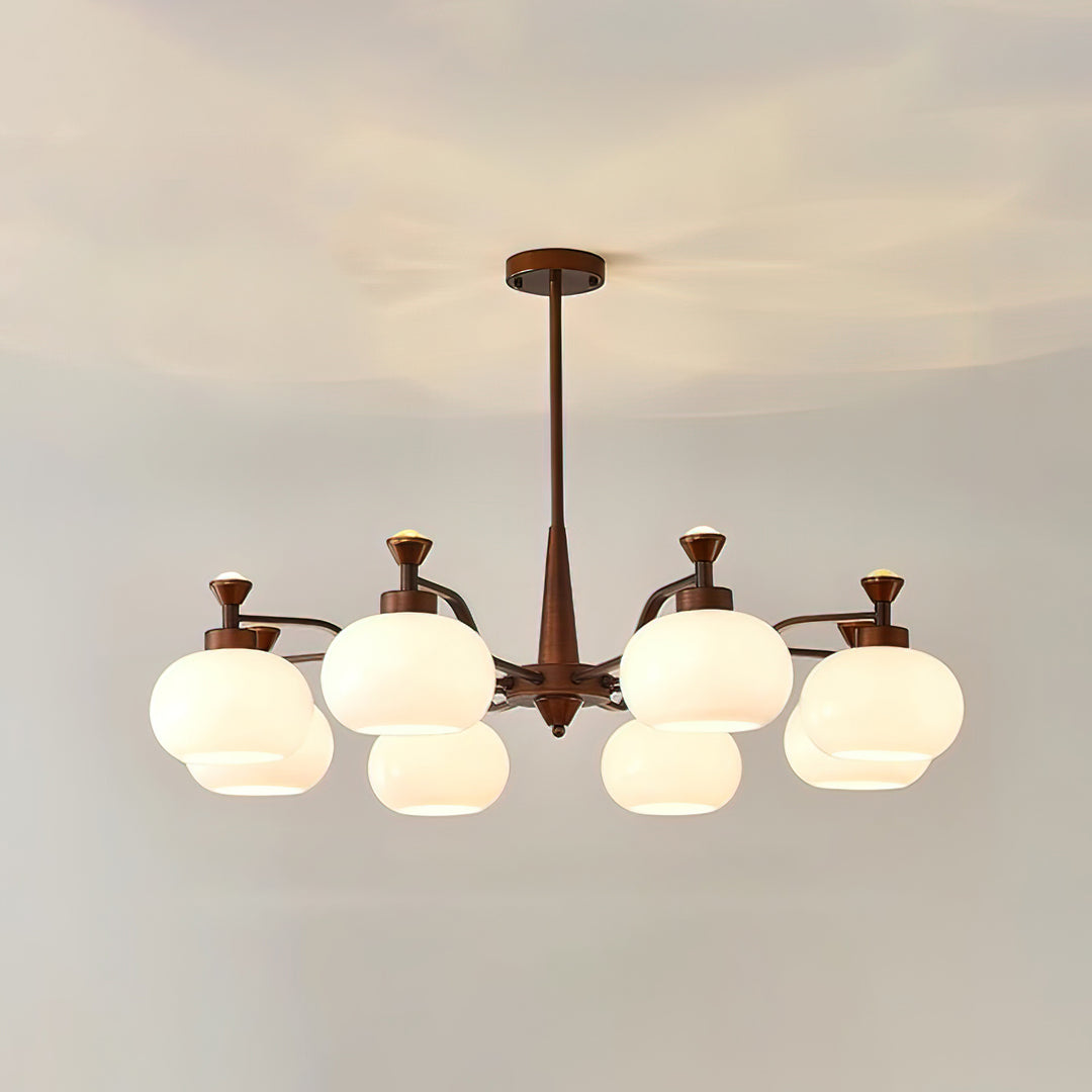 The Globe Spotlight Chandelier masterfully combines the soft, diffused light of frosted globes with the targeted brightness of spotlights. The reddish-brown frame adds a warm, earthy tone, while the integrated spotlights bring a modern touch, offering both ambiance and functionality. This chandelier is designed to be the perfect blend of classic form and contemporary lighting technology, making it a standout piece in any space.