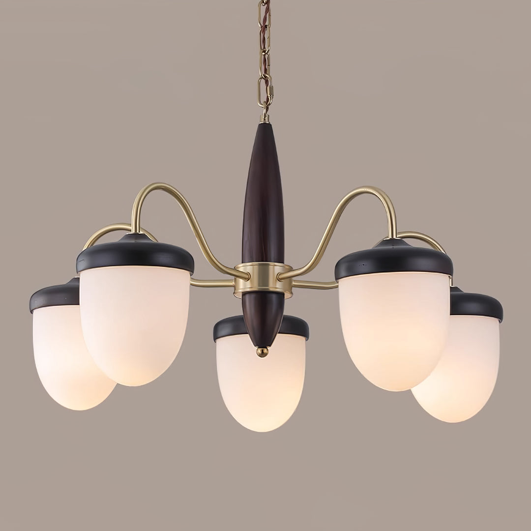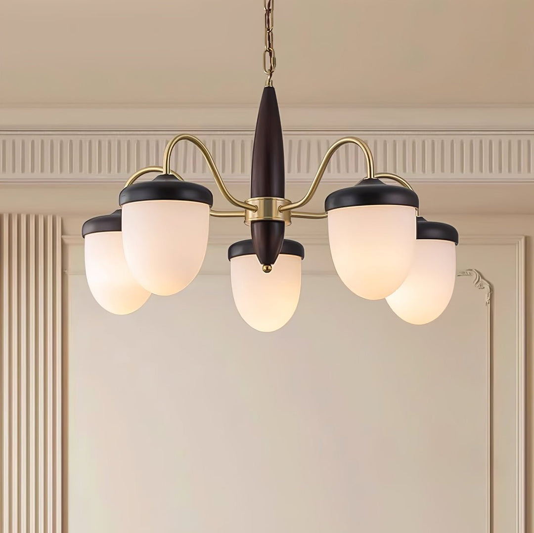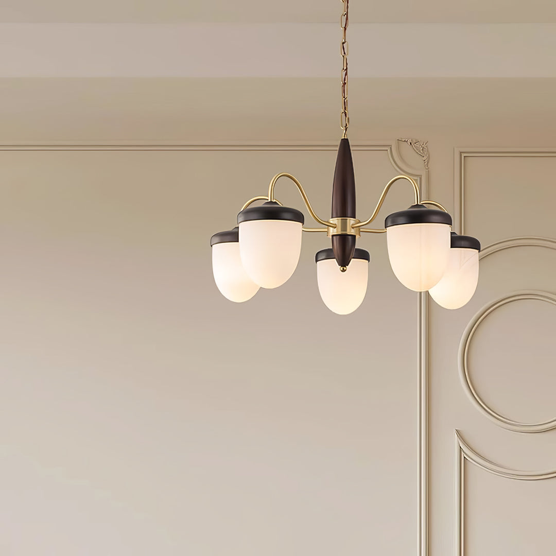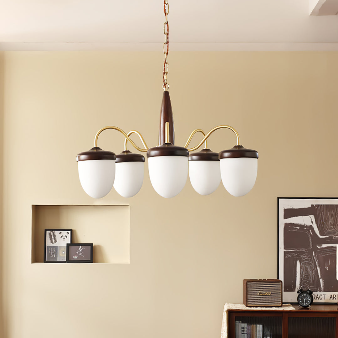 The Hazelnut Wood and Glass Chandelier combines the warmth of rich walnut wood with the clarity and elegance of glass. This fixture showcases a sophisticated design featuring wooden elements that bring a natural, earthy feel, contrasted with clear or frosted glass shades that diffuse light beautifully. Ideal for adding a touch of rustic elegance to any setting, this chandelier blends well with both contemporary and traditional decor, making it a versatile choice for lighting up dining areas, living rooms, or entryways.