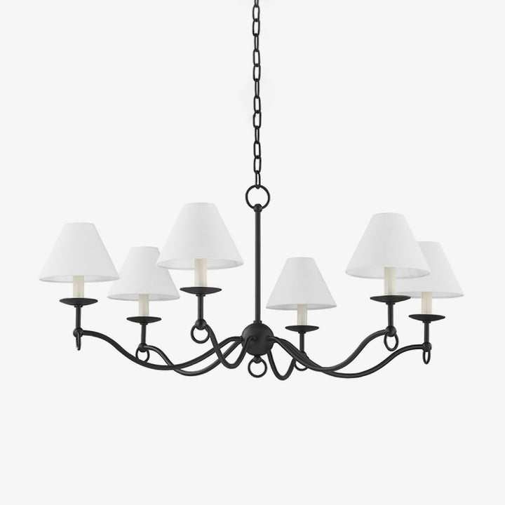 The Henry Chandelier is a perfect mix of rustic charm and modern style. Featuring six elegantly curved arms with classic white shades, this piece brings a cozy yet refined look to your home. Its versatile design is well-suited for dining rooms, living areas, or entryways, where it adds a touch of warmth and style.