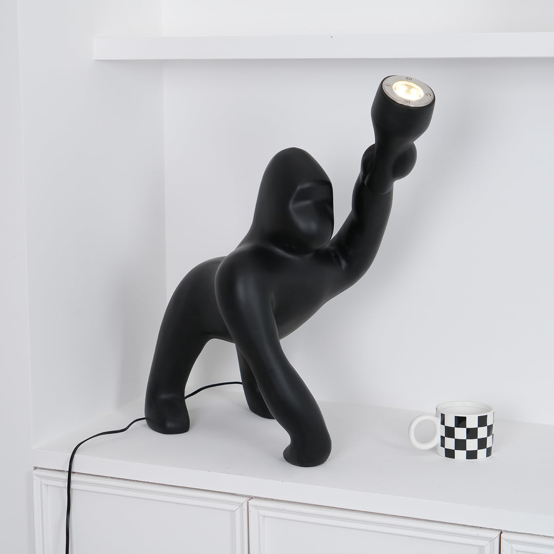 The Kong Floor Lamp is the perfect combination of style and practicality, making it a standout addition to any room. With a sleek matte black finish and a whimsical figure holding the light, it adds a touch of modernity and playfulness to any space. Elevate your interior with this statement piece.
