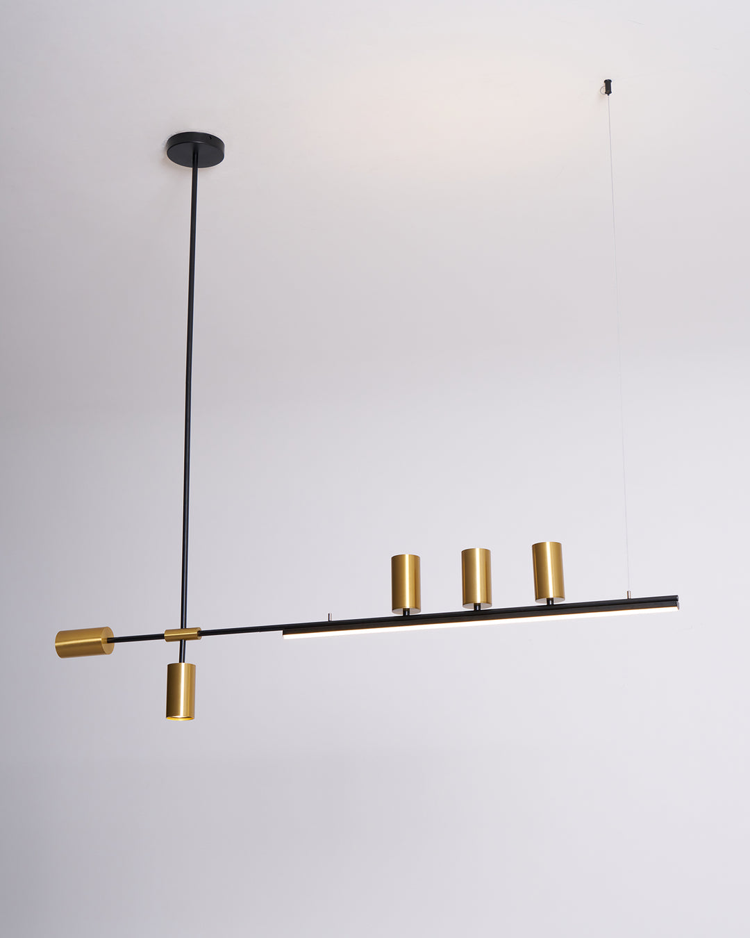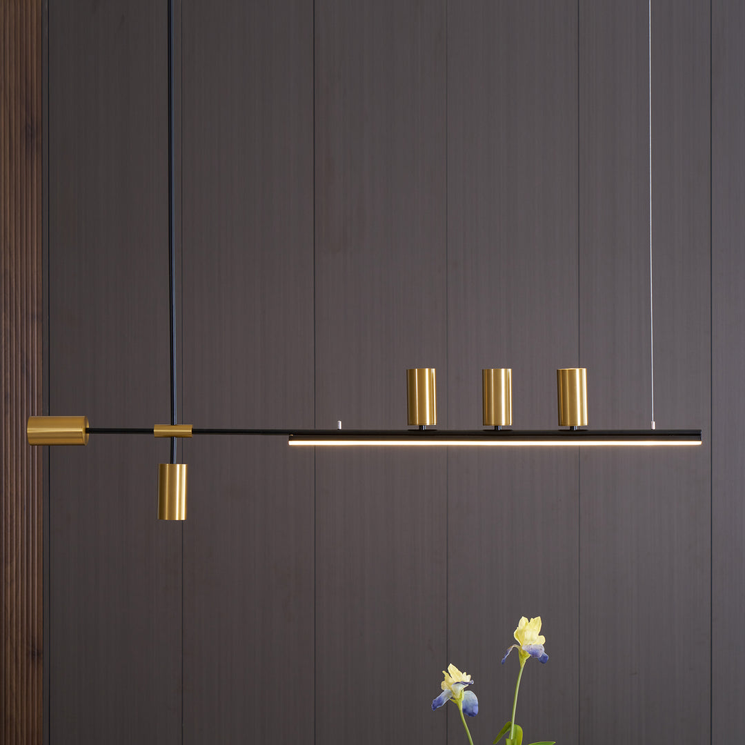 The Linear Elegance Pendant Lamp showcases a refined, minimalist design perfect for contemporary spaces. Its slender horizontal bar, crafted from high-quality metal with a sleek finish, supports multiple cylindrical fixtures that exude a soft, ambient light. This fixture is designed to offer both functional illumination and a touch of modern sophistication, making it ideal for placement over dining areas, kitchen islands, or office spaces. The lamp’s adjustable suspension system allows for customizable heights, adapting effortlessly to any room’s requirements.