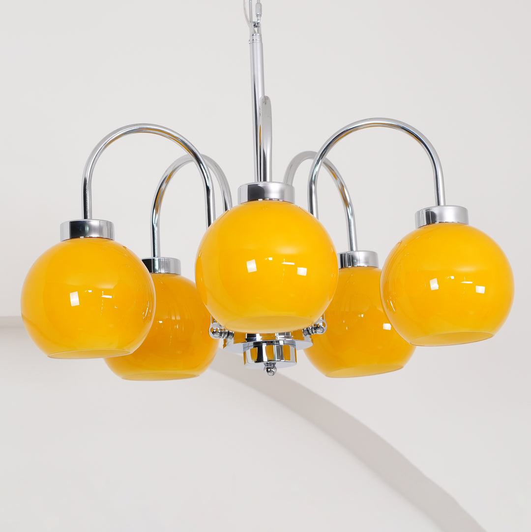 Illuminate your space with the vibrant Loa Chandelier from Vakkerlight. Featuring striking yellow glass globes and sleek chrome finishes, this chandelier adds a pop of color and modern flair to any room. Perfect for dining areas, living rooms, and kitchens, the Loa Chandelier combines bold design with high-quality materials, creating a stylish and contemporary lighting solution for your home.