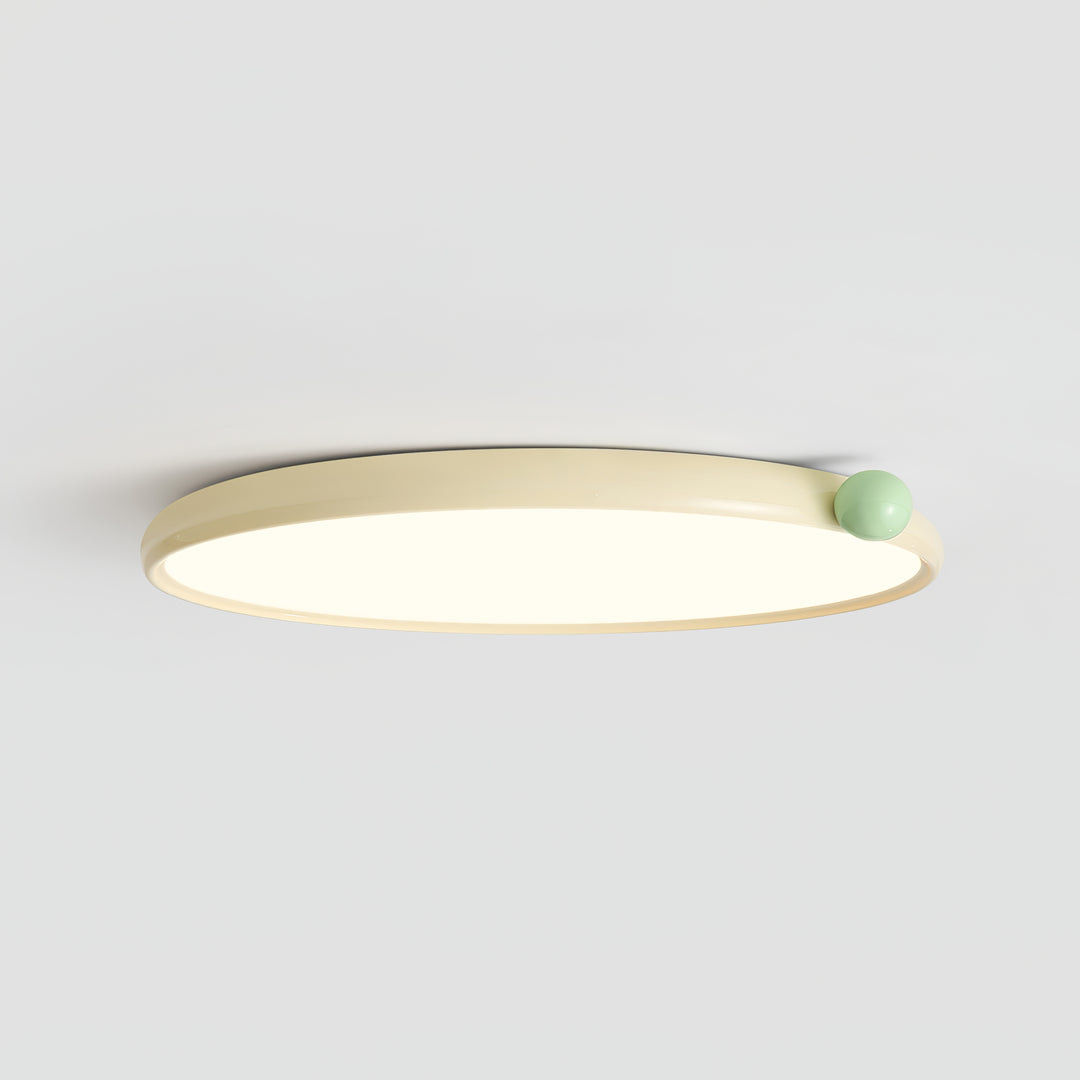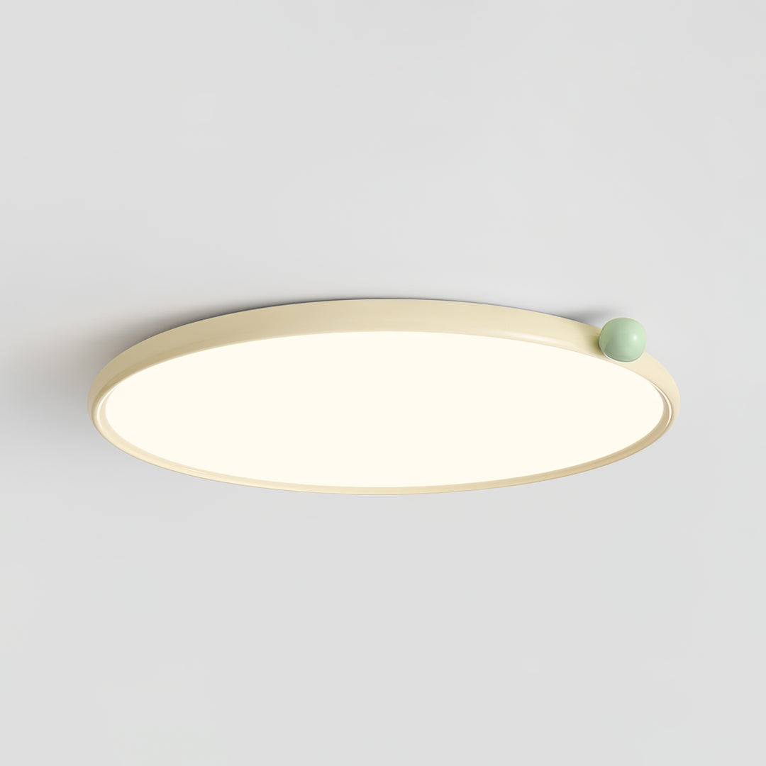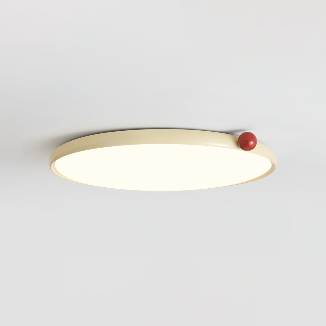 Create a modern and stylish atmosphere in any space with the Lola Ceiling Lamp. The sleek round design exudes simplicity, while the soft diffused light creates a tranquil ambiance. With playful red accents, this lamp adds a touch of personality and creativity. Seamlessly blend form and function in your home with this subtle yet fashionable lighting solution.