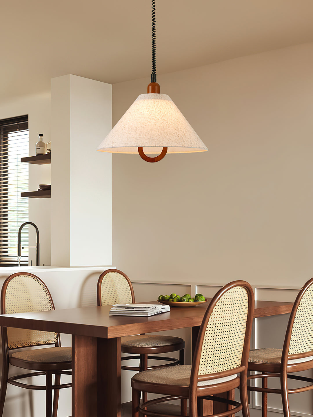The Loopeds Pendant Lamp boasts a conical fabric shade with a stylish looped accent, complemented by a playful coiled cord. A perfect balance of form and function, this lamp exudes minimalistic charm with a touch of sophistication. Illuminate your space with warmth and elegance.