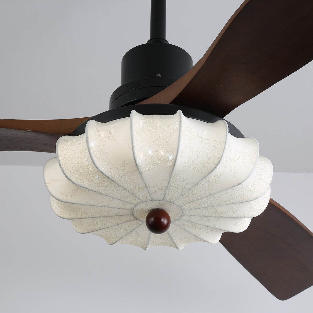 Materials: Metal frame, Wood blades, Fabric shade, pure copper motor.