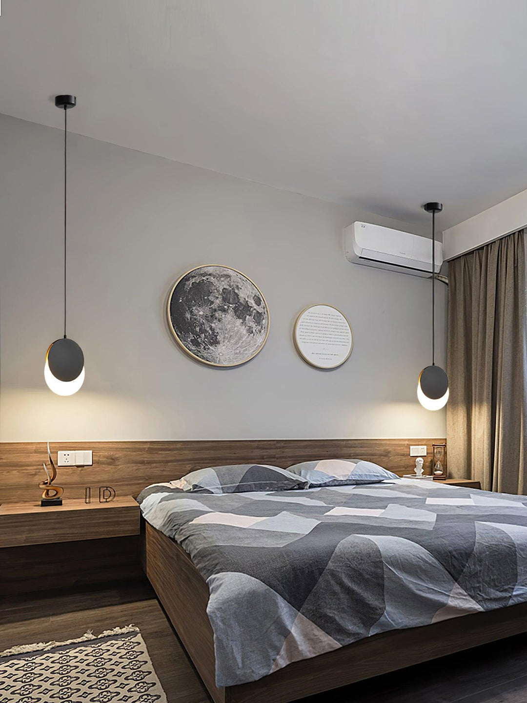 With an innovative design and a romantic visual effect, this pendant light resembling a lunar eclipse is an artistic choice to brim your home with balmy and non-dazzling light, as well as a flair of romantic placidity, mingling with your homestyle effortlessly. The ceiling light’s middle panel can be adjusted to different positions to the black shade, creating the desired image of various moon phases! This romantic ceiling light is suitable for various occasions, from the bedrooms and living rooms of general homes to restaurants and cafes!