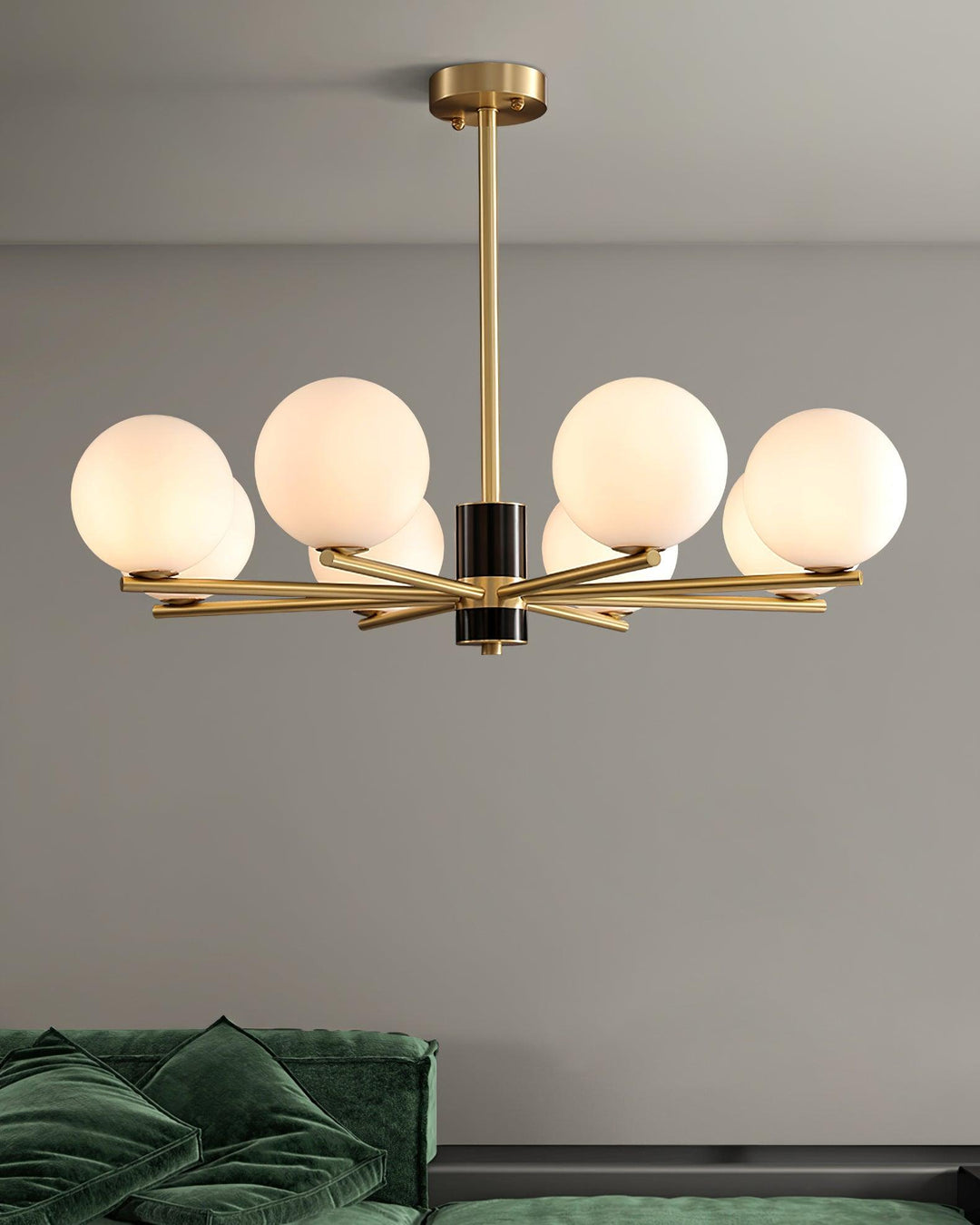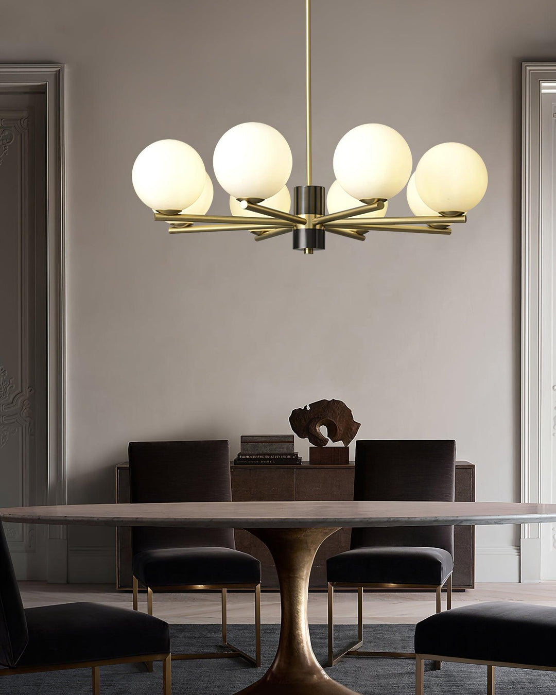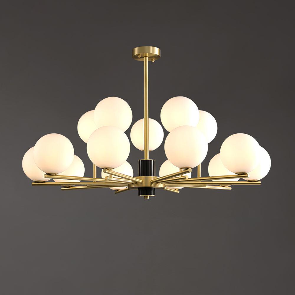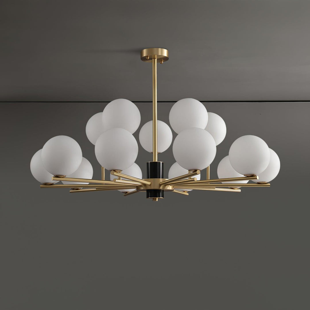 The Marais Chandelier provides a gentle, ambient light and creates a tranquil atmosphere. Its white glass spheres hang gracefully, giving it an elegant and refined look that adds a touch of minimalism to any home. Enjoy its calming presence and effervescent beauty.