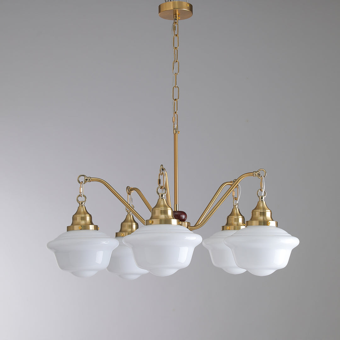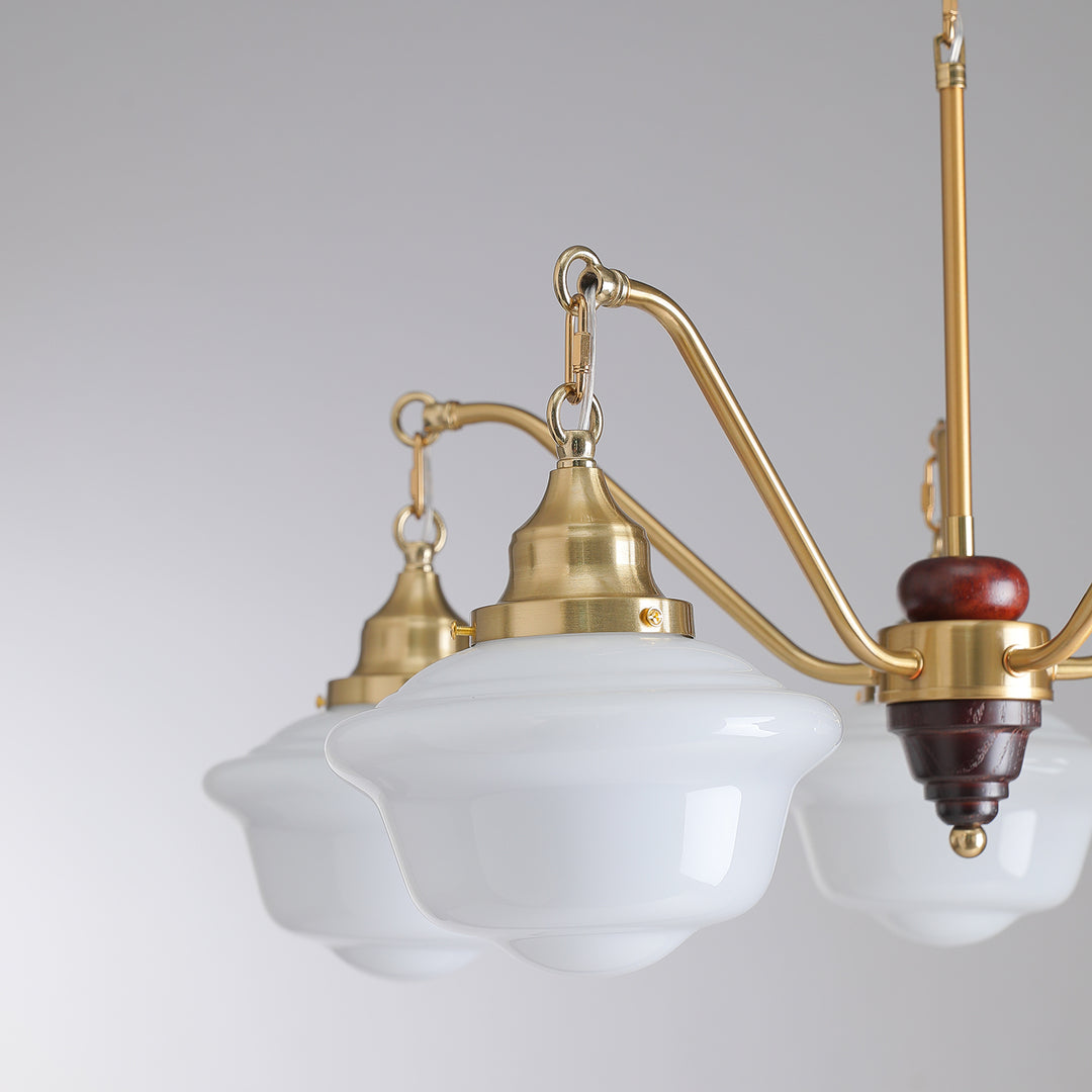The Marquette Chandelier combines classic craftsmanship with modern elegance. Featuring a blend of polished metal, natural wood accents, and frosted glass globes, this stunning light fixture creates a warm and inviting ambiance. Its timeless design makes it the perfect addition to both contemporary and vintage-inspired interiors, whether hanging above a dining table or gracing your living room. Elevate your home’s aesthetic with the Marquette Chandelier by Vakkerlight, designed to bring sophistication and light to any space.